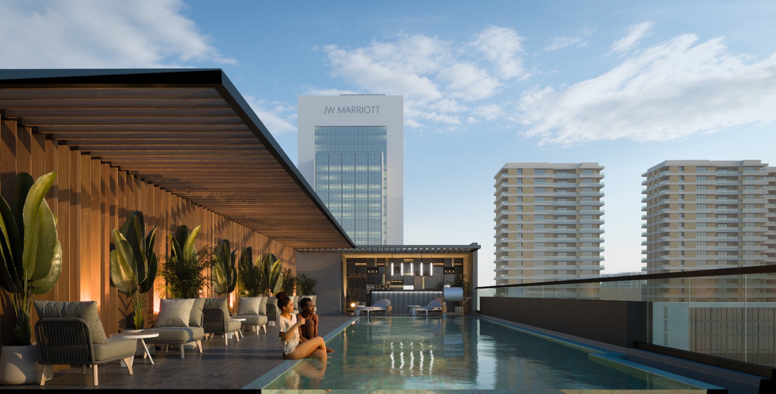 ✔ Rooftop heated infinity pool overlooking the city skyline