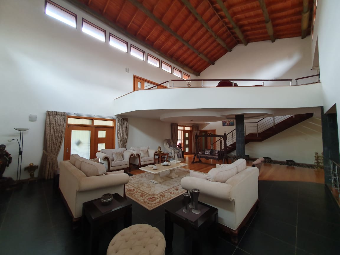 Approximately 6,500 sq-ft. On a 1 acre plot with 2 houses only. It has a spacious garden and ample parking with 2 garages