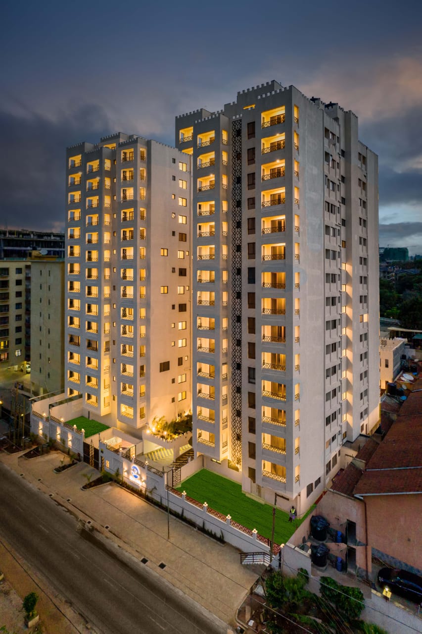 It is a Modern, trendy building modelled on the impressive towers of Dubai. Available unit is Apartment number 14H, on the highest floor, to give you the panoramic views of Nairobi.